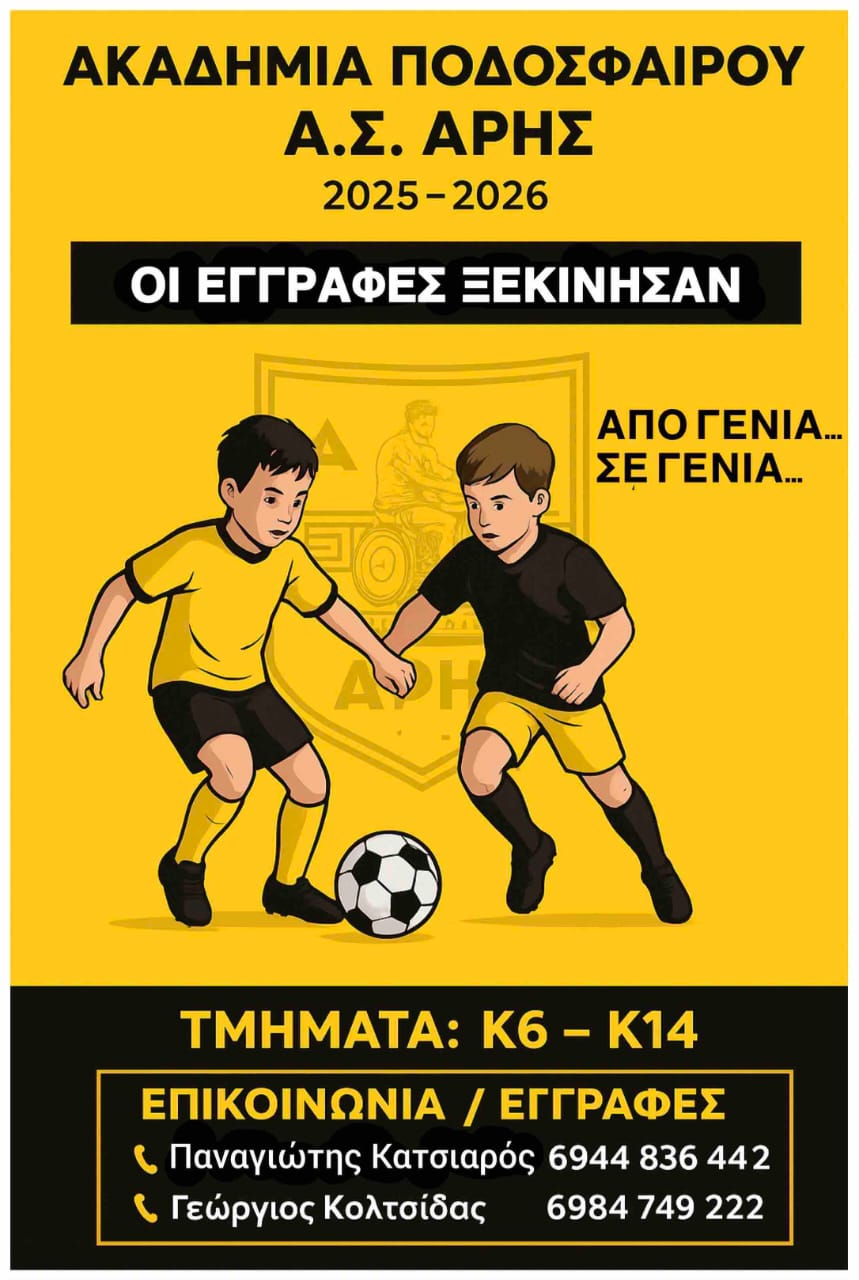 Ο Α.Σ. AΡΗΣ ανακοινώνει την επίσημη έναρξη της αγωνιστικής περιόδου 2025–2026 για τα τμήματα της Ακαδημίας Ποδοσφαίρου.