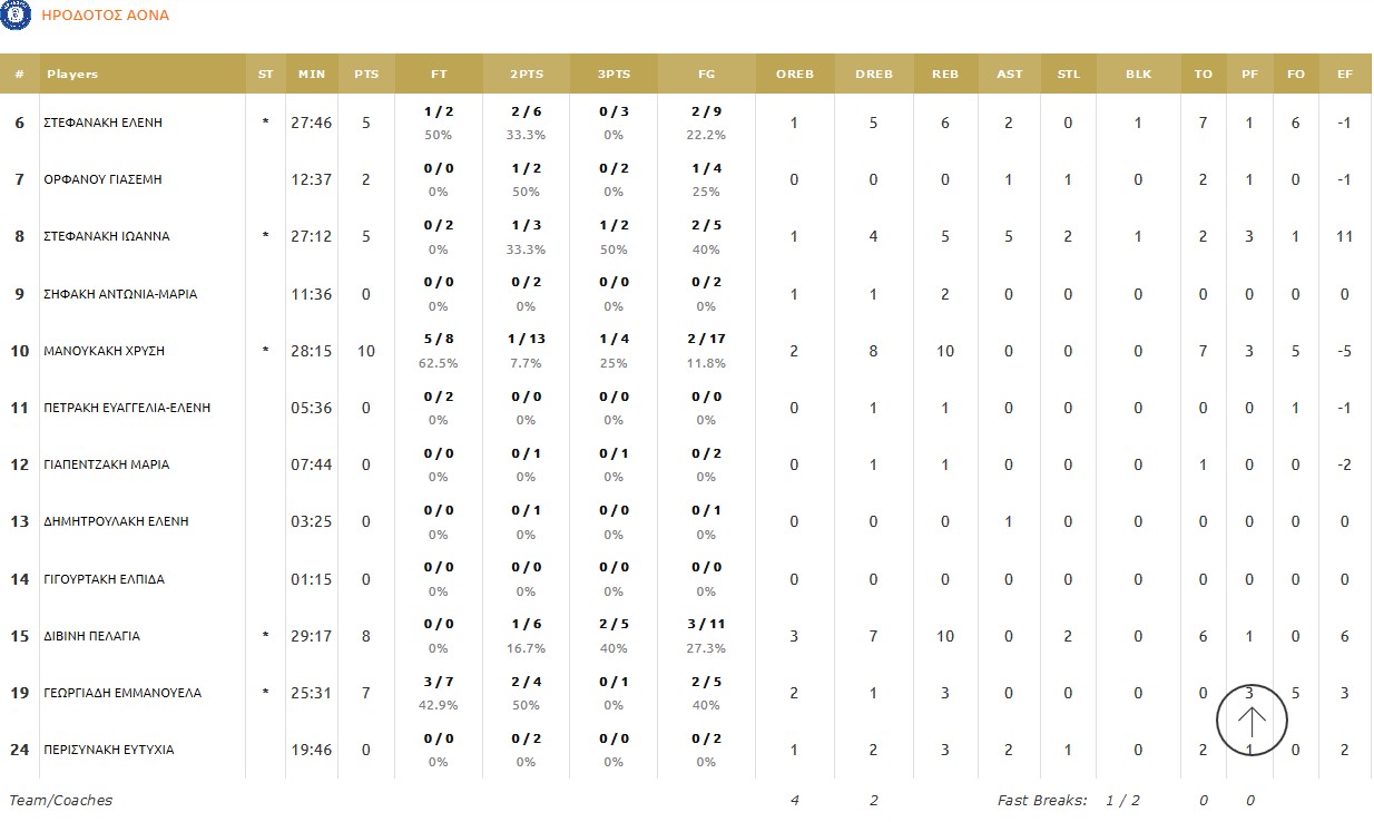 Ηρόδοτος (Σταυρακάκη): Στεφανάκη Ε. 5, Ορφανού 2, Στεφανάκη Ι. 5(1), Σηφάκη, Μανουκάκη 10(1), Πετράκη, Γιαπεντζάκη, Δημητρουλάκη, Γιγουρτάκη, Διβίνη 8(2), Γεωργιάδη 7, Περισυνάκη.