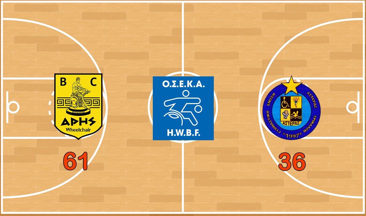 Η ομάδα Μπάσκετ με Αγωνιστικό Αμαξίδιο του ΑΡΗ κέρδισε τον Αστέρα Τρικάλων με 61-36, παίρνοντας την πρόκριση για τη β’ φάση του Κυπέλλου Ελλάδας.