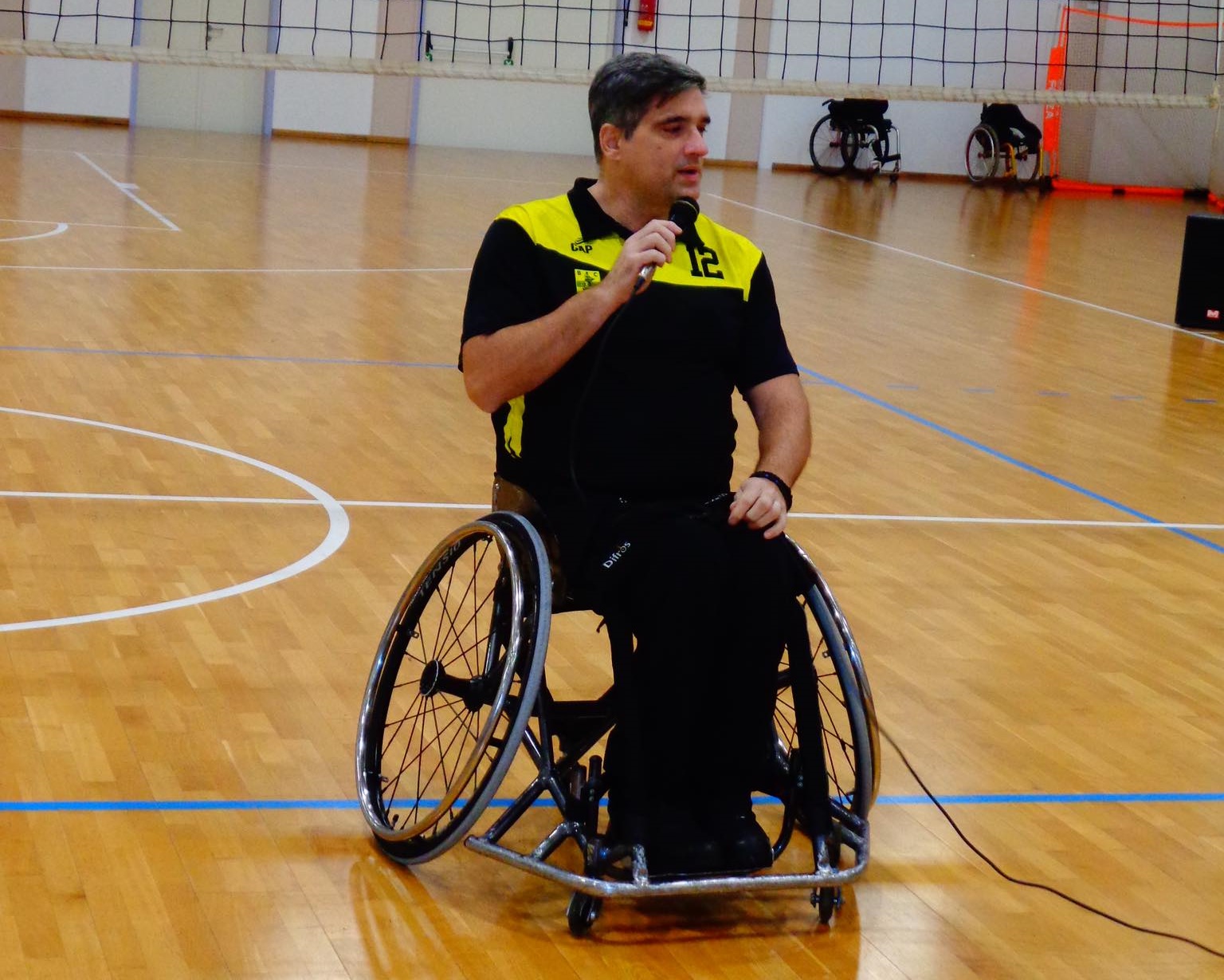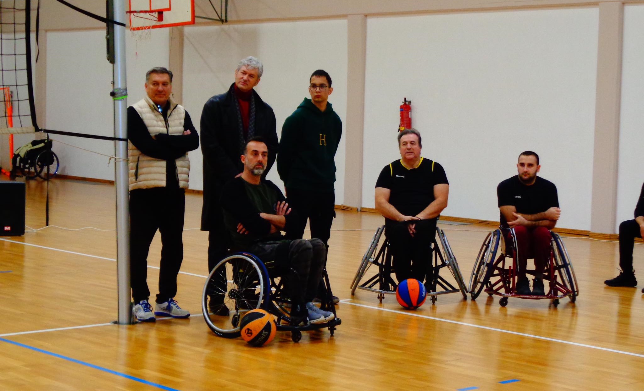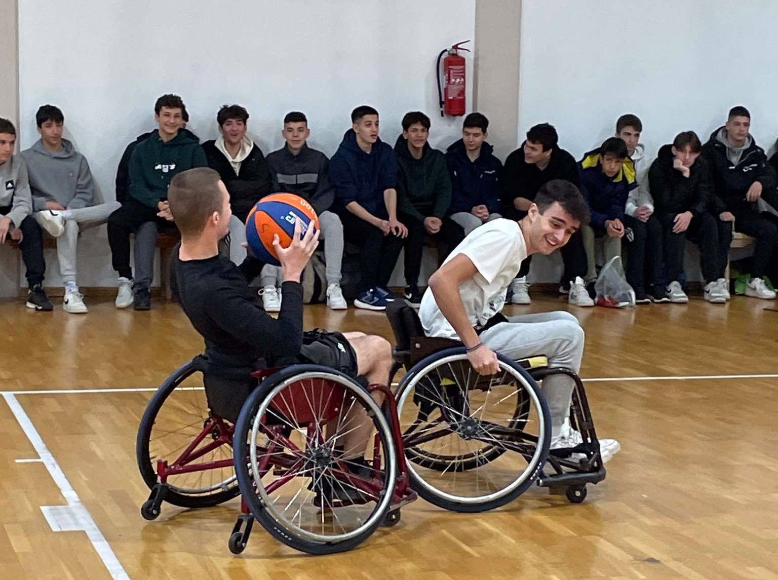 Ακολούθησε επίδειξη του αθλήματος Μπάσκετ με Αγωνιστικό Αμαξιδίων , όπου ανταλλάξαμε απόψεις , λύσαμε απορίες και οι παρευρισκόμενοι δοκίμασαν να αθληθούν με Αγωνιστικά Αμαξίδια. Ο ενθουσιασμός ήταν διάχυτος, τόσο από τους μαθητές, όσο και από τους καθηγητές.