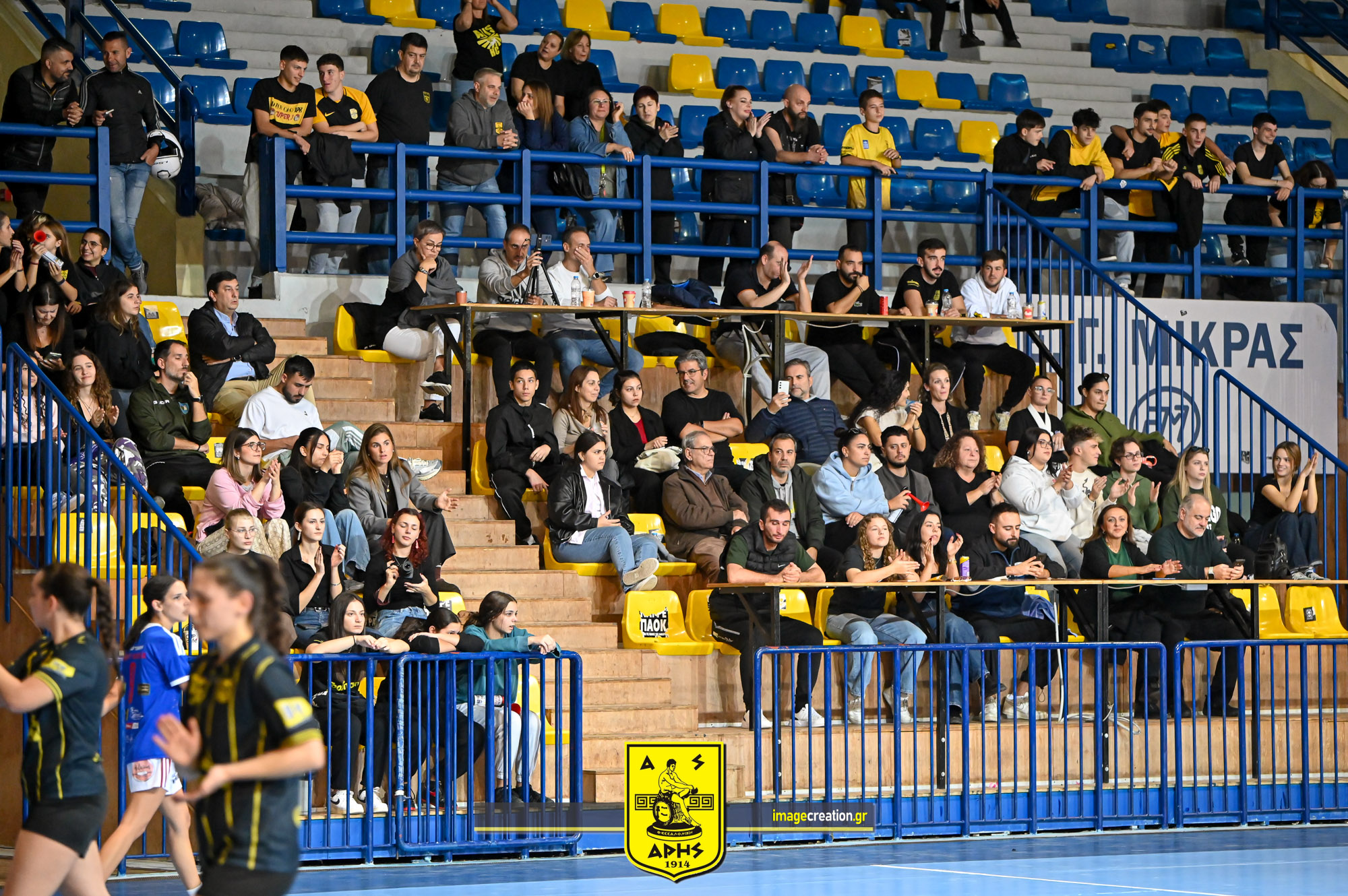 Η ομάδα του Σωτήρη Αναστασιάδη έκανε εντυπωσιακή αρχή και έφτασε στη νίκη, έχοντας και θερμή συμπαράσταση από τους φίλους του ΑΡΗ, που αγκάλιασαν την προσπάθεια που γίνεται στο τμήμα Χάντμπολ.