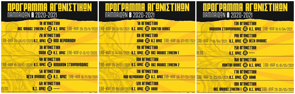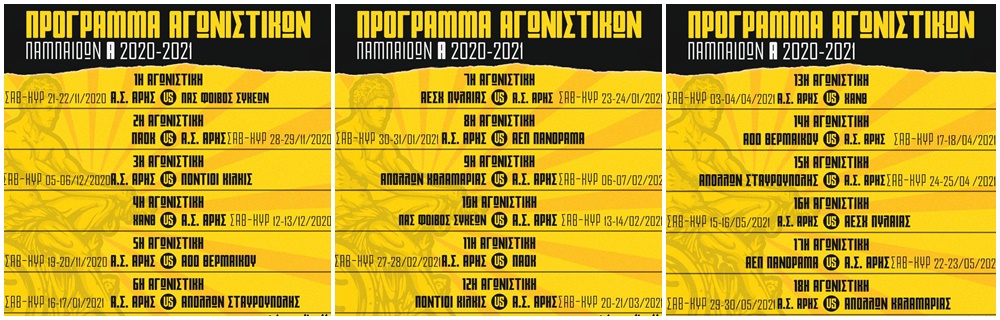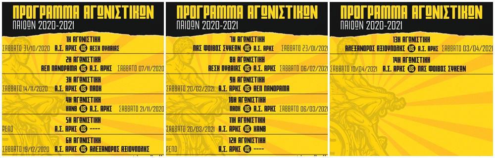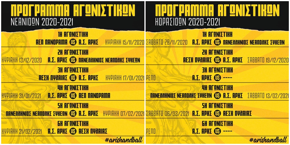 Ο Α.Σ. ΑΡΗΣ ανακοινώνει το πρόγραμμα των τμημάτων υποδομής Χάντμπολ για την αγωνιστική περίοδο 2020-21.