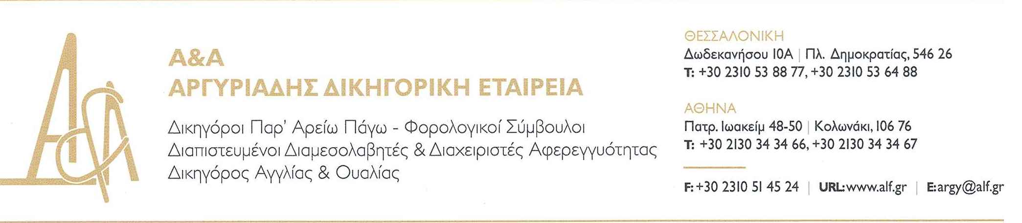 Ο Πρόεδρος και το Διοικητικό Συμβούλιο του ΑΣ ΑΡΗΣ ΘΕΣΣΑΛΟΝΙΚΗΣ ευχαριστούν θερμά την δικηγορική εταιρία ” Α&Α Αργυριαδης & Συνεργάτες ” για τη χορήγηση του ιματισμού της αγωνιστικής ομάδας του τμήματος Άρσης Βαρών του Συλλόγου μας ενόψει διεξαγωγής του Πανελλήνιου Πρωταθλήματος.