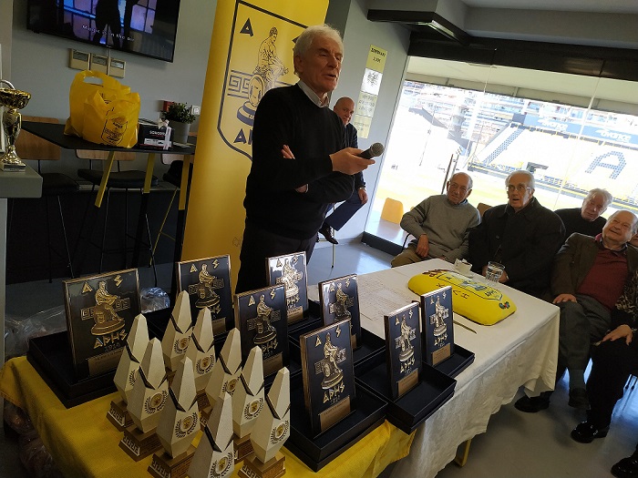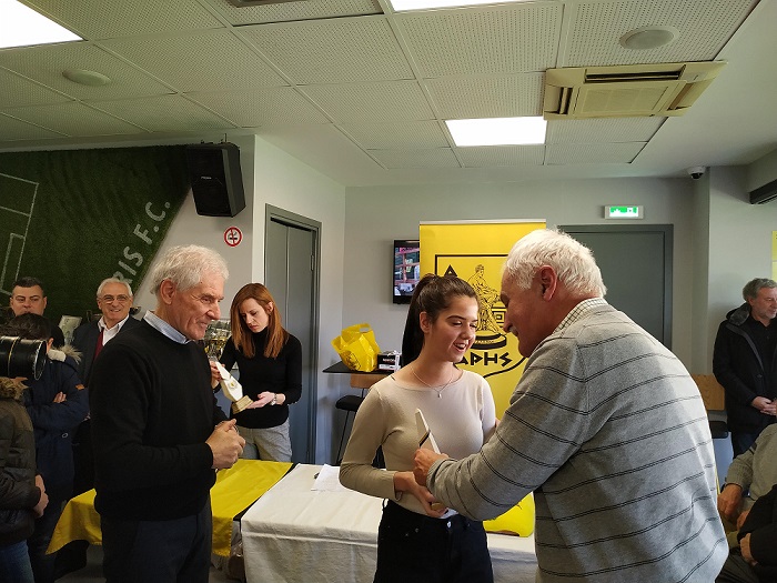 Στην εκδήλωση βραβεύθηκαν τέσσερις παλαιοί αθλητές, οι οποίοι μας τίμησαν με την παρουσία τους, καθώς δόθηκαν και τιμητικές πλακέτες στις οικογένειες τεσσάρων παλαιών αθλητών μας που έφυγαν από κοντά μας .