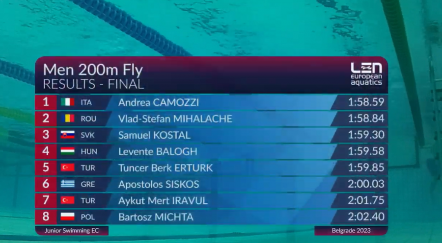 Ο Απόστολος Σίσκος κολύμπησε σε 2:00.03 και κατέλαβε την 6η θέση στον τελικό στα 200μ. πεταλούδα του Ευρωπαϊκού Πρωταθλήματος Κολύμβησης Εφήβων – Νεανίδων, που διεξάγεται στο Βελιγράδι.