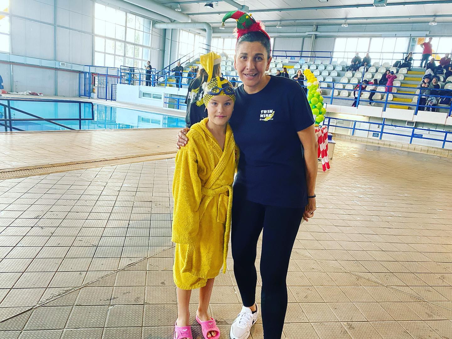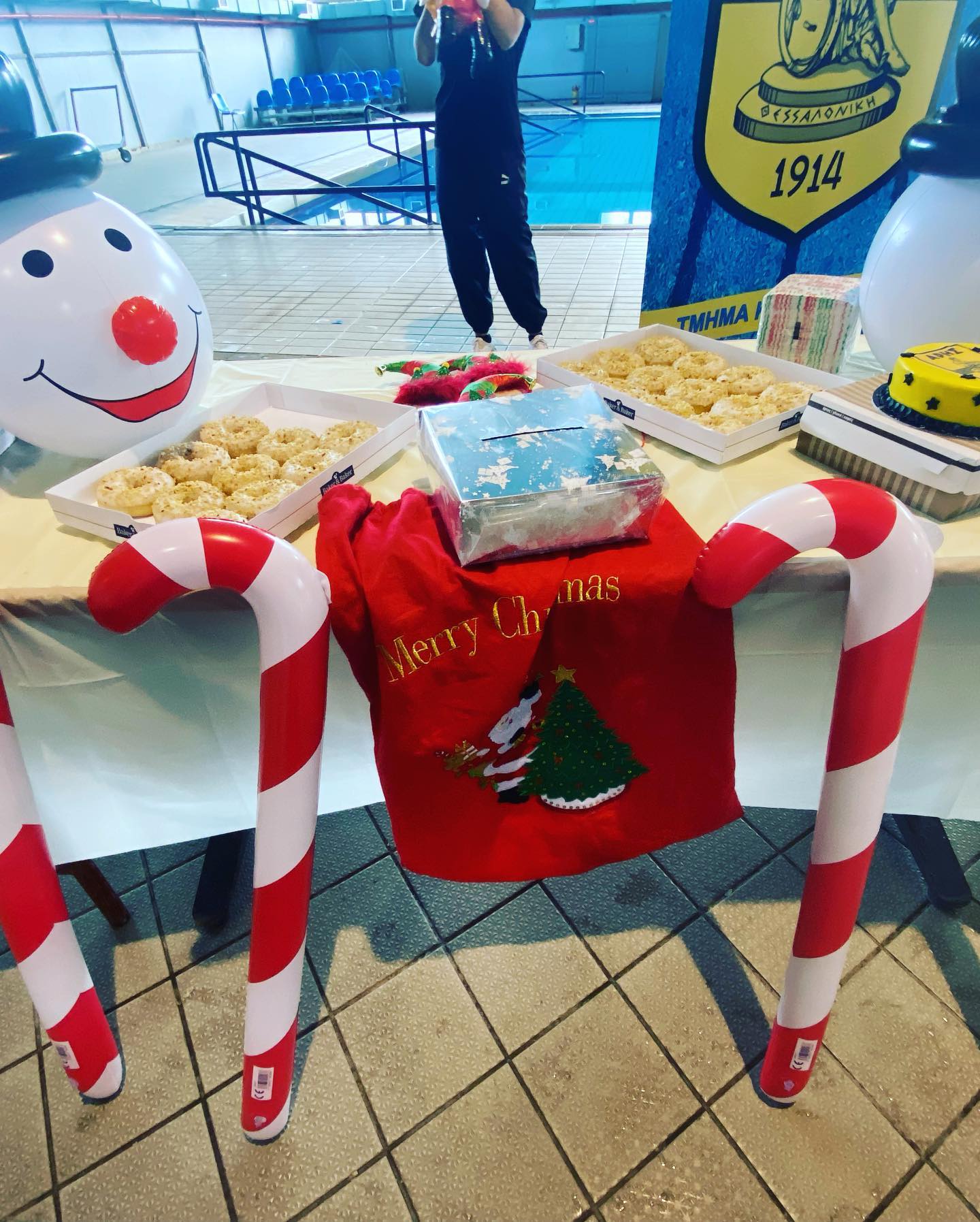 Τα μικρά μας δελφινάκια κολύμπησαν και στη συνέχεια πήραν το κέρασμα και το μετάλλιο τους. Άκουσαν χριστουγεννιάτικα τραγούδια, χόρεψαν, φωτογραφήθηκαν με τον Άγιο Βασίλη και έπαιξαν στην πισίνα με φουσκωτά παιχνίδια.