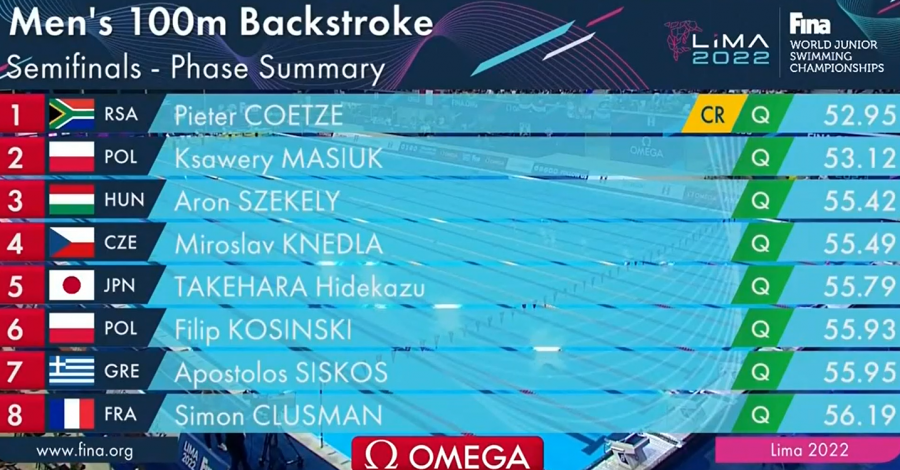 Την πρόκρισή του στον τελικό των 100μ ύπτιο στο 8ο Παγκόσμιο Πρωτάθλημα Νέων που διεξάγεται στη Λίμα του Περού εξασφάλισε ο Απόστολος Σίσκος!