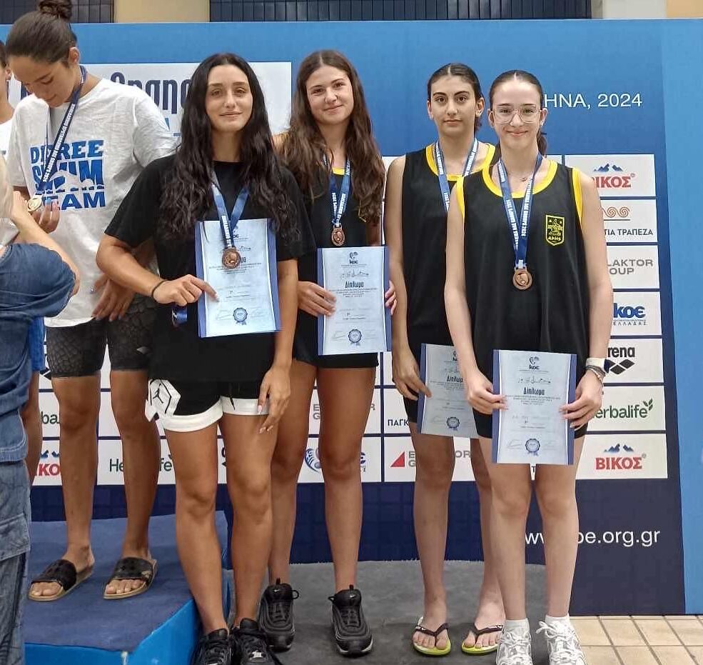 Επίσης, την τρίτη θέση κατέκτησαν στα 4Χ100μ ελεύθερο ΑΓ14.