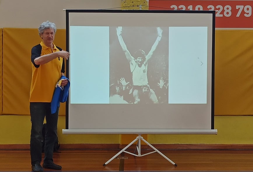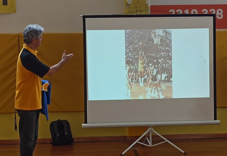 Η μεγάλη δόξα της μπασκετικής ομάδας του ΑΡΗ, αλλά και νυν πρόεδρος της ΚΑΕ στη μεγάλη προσπάθεια που γίνεται για να ξεπεραστούν οι δυσκολίες που υπάρχουν, βρέθηκε στο κλειστό «Μάκης Νάτσης» και με μεγάλη χαρά μίλησε στους νεαρούς αθλητές του Camp. Τους ανέλυσε την πλούσια καριέρα του και τη σκληρή δουλειά που χρειάστηκε για να φτάσει από τα τμήματα υποδομής του ΑΡΗ στο να εξελιχθεί σε έναν από τους μεγαλύτερους σκόρερ όλων των εποχών στο ελληνικό μπάσκετ. Επίσης τους εξήγησε τι πρέπει να κάνουν για να γίνουν σωστοί αθλητές αλλά και άνθρωποι.