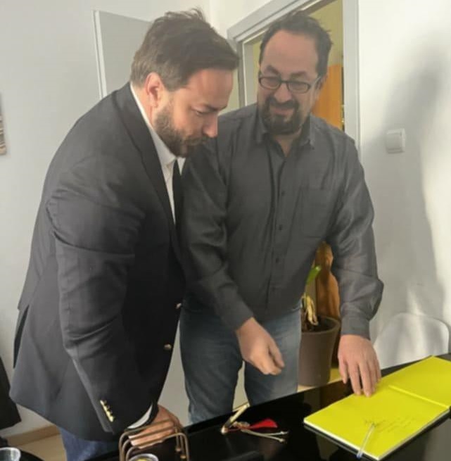 Ο Βασίλης Δερμεντζόγλου μετέβη στο γραφείο του βουλευτή και ακολούθησε μια ενδιαφέρουσα συζήτηση, με τον βουλευτή να μην κρύβει τη βούλησή να βοηθήσει με κάθε τρόπο στα επόμενα βήματα του Τομέα. Από την πλευρά του ο υπεύθυνος του Τομέα Ιστορίας του ΑΡΗ πρόσφερε στον βουλευτή τα δύο φετινά ημερολόγια και το επετειακό λεύκωμα των 110 χρόνων του συλλόγου του θεού του πολέμου.