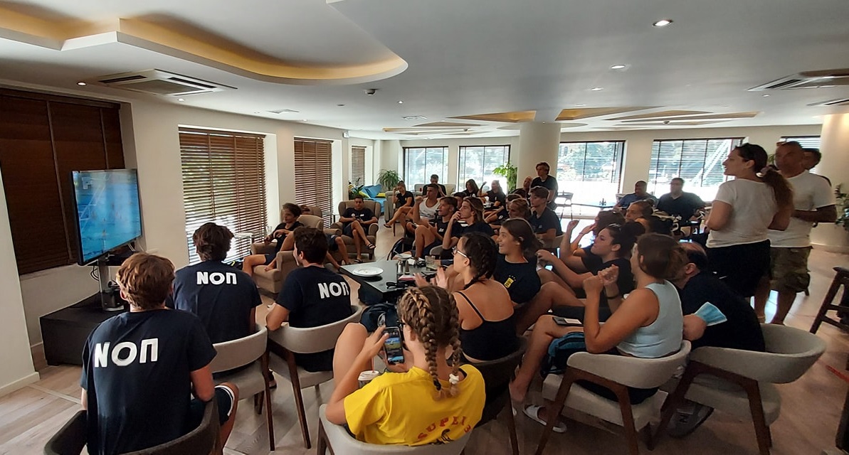 Νωρίτερα, η αποστολή του ΑΡΗ παρακολούθησε μαζί με την αντίστοιχη του Ν.Ο. Πατρών τον τελικό των Ολυμπιακών Αγώνων ανάμεσα στην Εθνική Πόλο και τη Σερβία και χειροκρότησαν την κατάκτηση του ασημένιου μεταλλίου από το αντιπροσωπευτικό μας συγκρότημα.