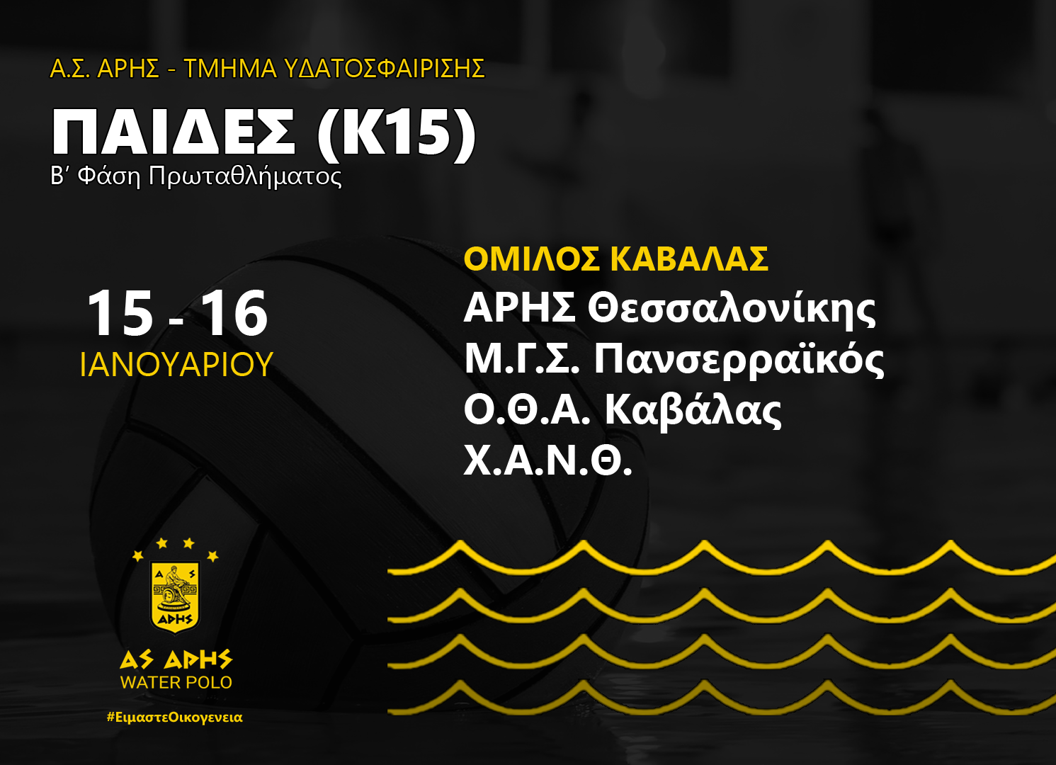 Η ομάδα Πόλο Παίδων του ΑΡΗ είναι έτοιμη για τη Β’ Φάση του Πανελλήνιου Πρωταθλήματος, το οποίο ξεκινά την Παρασκευή 14/01 και ολοκληρώνεται την Κυριακή 16/01.
