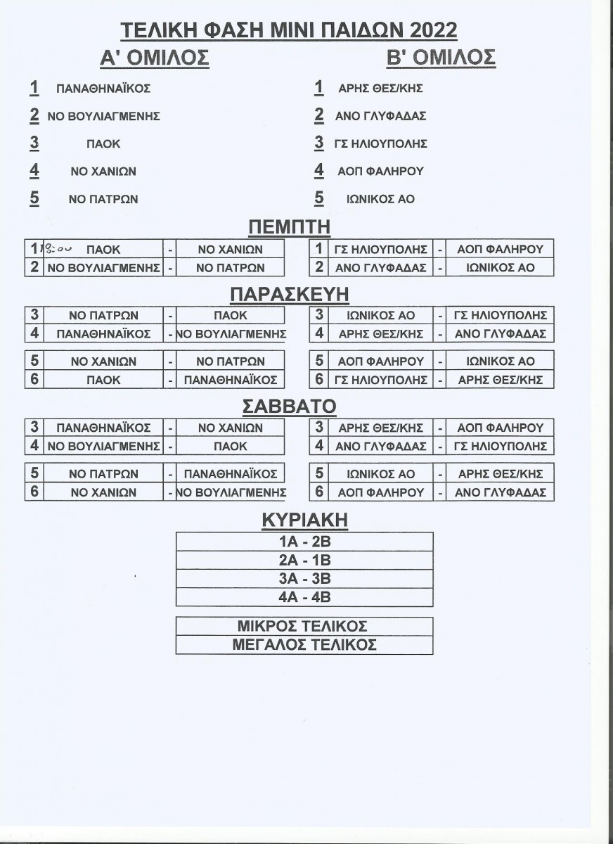 Α’ ΟΜΙΛΟΣ: Παναθηναϊκός, ΝΟ Βουλιαγμένης, ΠΑΟΚ, ΝΟ Χανίων, ΝΟ Πατρών