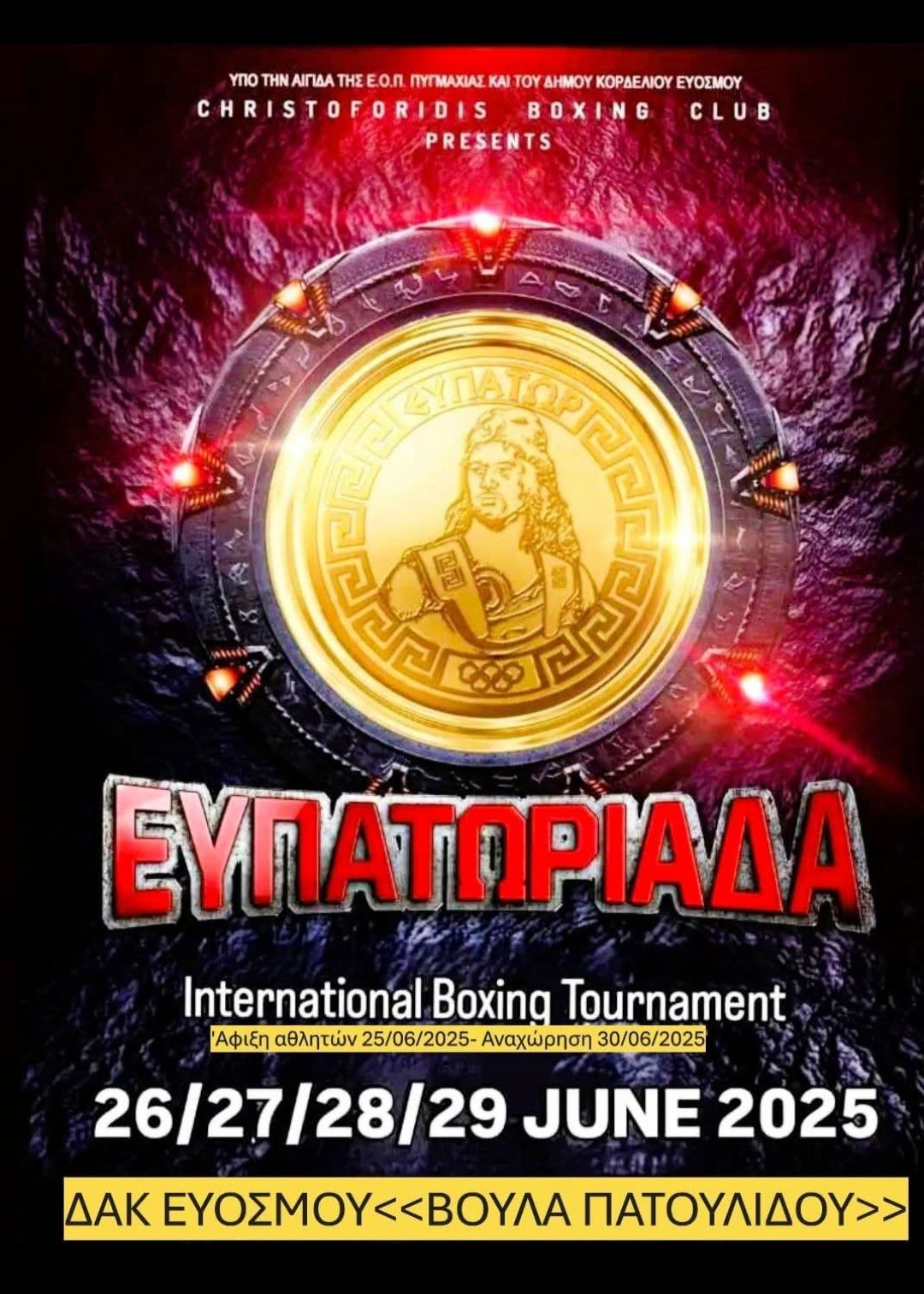 Με επτά πυγμάχους θα συμμετάσχει το τμήμα Πυγμαχίας του Α.Σ. ΑΡΗΣ στο διεθνές τουρνουά πυγμαχίας «ΕΥΠΑΤΩΡΙΑΔΑ», που θα πραγματοποιηθεί στη Θεσσαλονίκη από 26 έως 29 Ιουνίου, στο ΔΑΚ Εύοσμου.