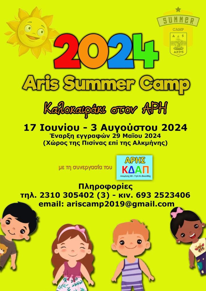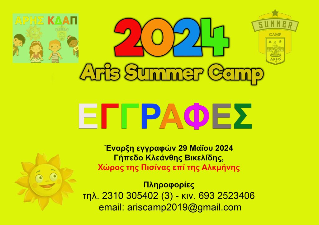 Την προσεχή Τετάρτη, 29 Μαΐου 2024, ξεκινούν οι εγγραφές για το καλοκαιρινό καμπ του Α.Σ. ΑΡΗΣ Οι εγγραφές μέχρι τις 14 Ιουνίου θα γίνονται στον