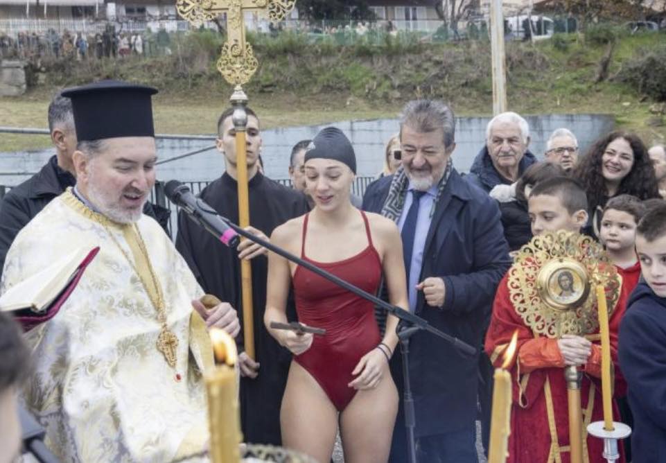 Στο κολυμβητήριο Συκεών κατά τον Αγιασμό των Υδάτων τον Τίμιο Σταυρό έπιασε η αθλήτρια Πόλο της ομάδας του ΑΡΗ και μαθήτρια της Β’ Λυκείου, Αθανασία Χαραμαλή.