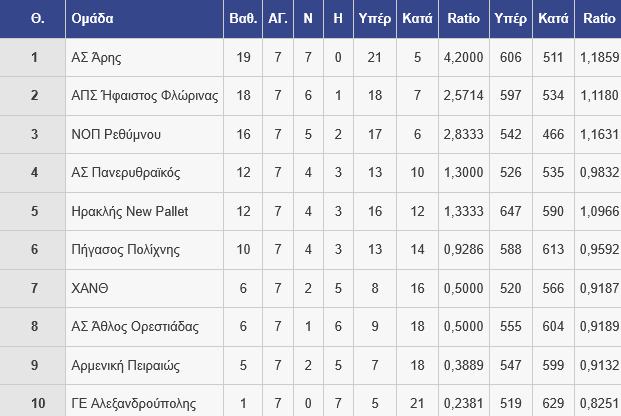 Η ομάδα του Γιάννη Μέλκα έφτασε τους 19 βαθμούς και την ακολουθεί σε απόσταση αναπνοής ο Ήφαιστος Φλώρινας, με 18 και στη συνέχεια ρο Ρέθυμνο με 16.