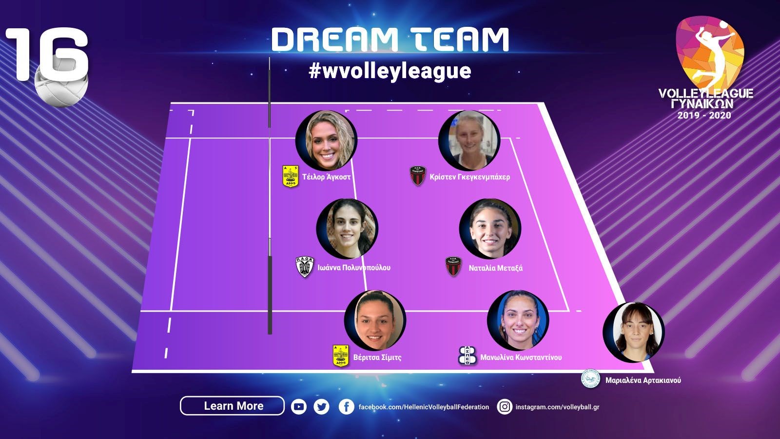 Ο ΑΡΗΣ κέρδισε τον Πανναξιακό με 3-1 σετ και οι Τέιλορ Άγκοστ, Βέριτσα Σίμιτς, κατέλαβαν τις δύο από τις επτά θέσεις των κορυφαίων. Για τη Σίμιτς, μάλιστα, είναι η δεύτερη συνεχόμενη συμμετοχή στην καλύτερη επτάδα, αφού συμπεριλήφθηκε σ’ αυτήν και τη 15η αγωνιστική, παίρνοντας και τον τίτλο της MVP.