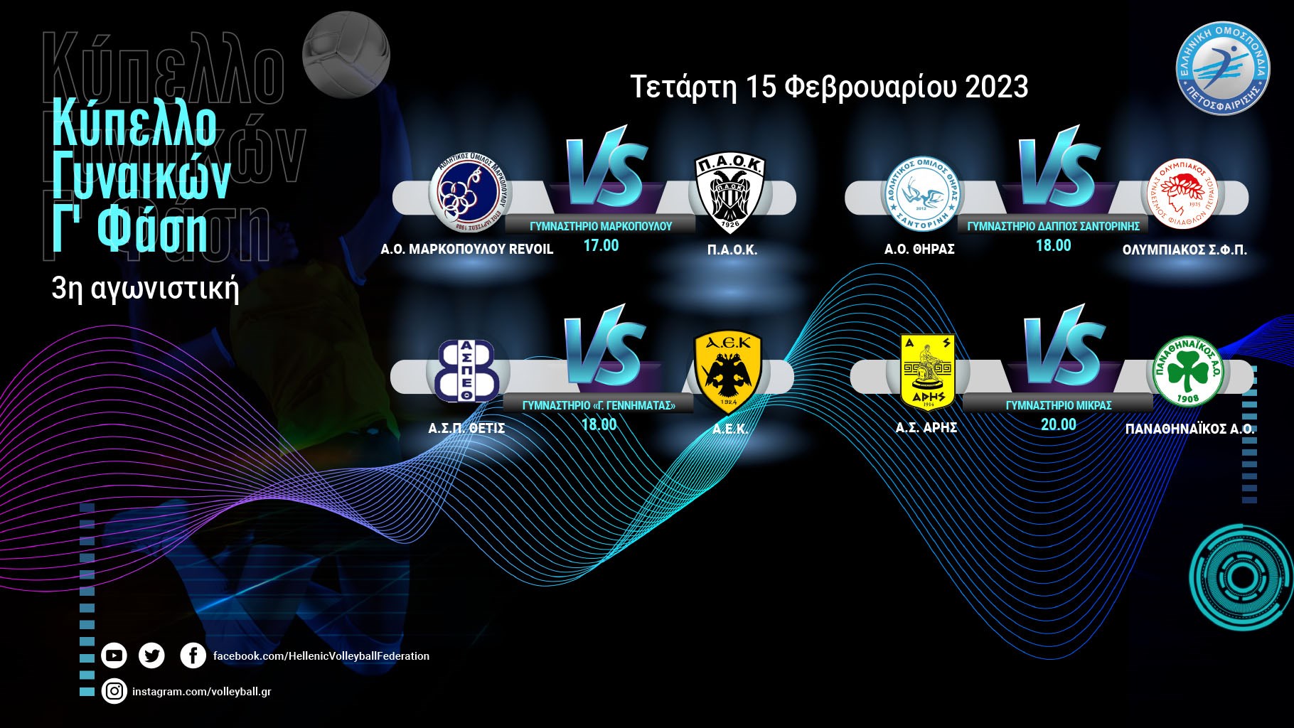 Η ομάδα Βόλεϊ Γυναικών του ΑΡΗ υποδέχεται αύριο (Τετάρτη, 15/02) τον Παναθηναϊκό στις 20:00, στη Μίκρα, για την προημιτελική φάση του Κυπέλλου Γυναικών.