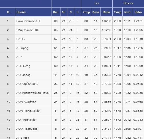 Η ΒΑΘΜΟΛΟΓΙΑ ΤΗΣ VOLLEY LEAGUE