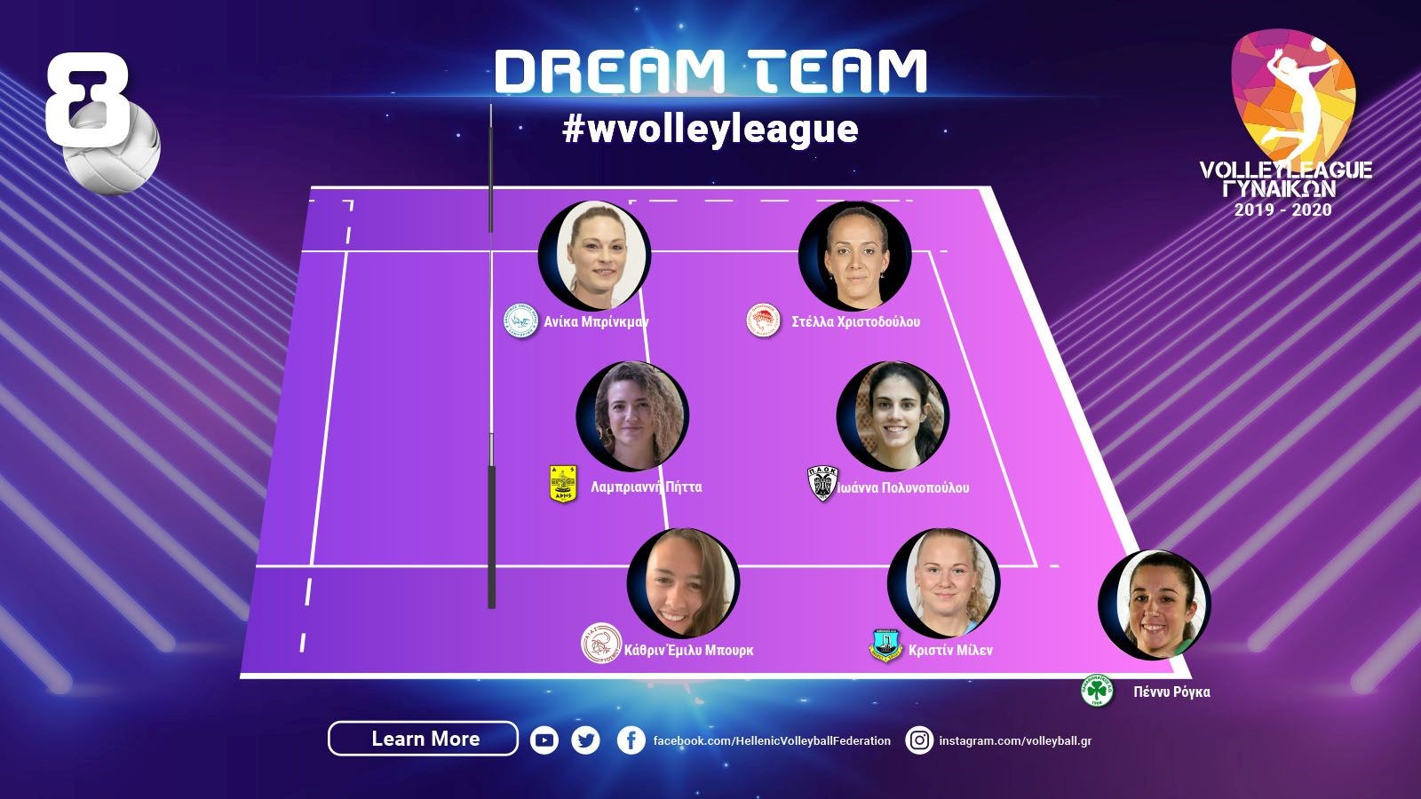 Ακραία: Ανίκα Μπρίνκμαν (ΑΟ Θήρας) 30π. (24/49 επ., 5 άσσοι, 1 μπλοκ, 40% υπ. – 29% άριστες).